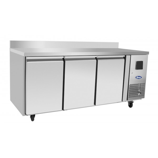 La table réfrigérée positive 3 portes GN1/1 adossée est un équipement professionnel conçu pour la conservation et la préparation des aliments en toute sécurité. Sa construction en inox assure une hygiène parfaite et une grande durabilité, tandis que le froid ventilé garantit une température homogène dans tout le meuble.