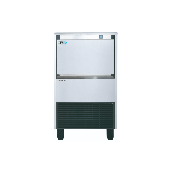 Machine à glaçons - Gamme SPIKA - Production (24G) : 45 kg - Stockage : 20 kg - Carrosserie inox AISI-304 18/10 - Système d'évaporateur vertical breveté - Refroidissement AIR - Glaçons cube 12 g - Compresseur : 1/4 cv - Glaçons par cycle : 75 tubes - Consommation d'eau (L/h) : 5.3 - Condenseur surdimensionné optimum pour les ambiances chaudes - Ventilation frontale - Vidange : 20 mm (par gravité) - Pieds réglables de 105 à 155 mm.