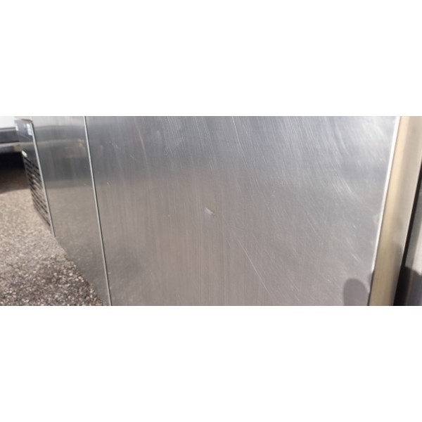 Meuble bas réfrigéré professionnel GN 2/1 – 495 L d’occasion, idéal pour restaurants, hôtels, collectivités et laboratoires alimentaires. Sa température stable +1°C/+4°C et sa classe climatique 5 garantissent une conservation optimale même en ambiance chaude jusqu’à +43 °C. Robuste et hygiénique, il dispose d’une isolation polyuréthane 60 mm haute densité, d’un plan de travail renforcé et d’aménagements inox modulables. Ce meuble d’occasion peut présenter légers signes d’utilisation tels que rayures ou impacts, sans incidence sur son fonctionnement. Équipé d’un évaporateur anticorrosion, d’un dégivrage automatique et d’un panneau tactile sans touches, il allie fiabilité, ergonomie et praticité pour une utilisation professionnelle durable.