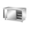 MEUBLE BAS CENTRAL EN INOX – PORTES COULISSANTES DOUBLÉES – 1 ÉTAGÈRE INTÉRIEURE