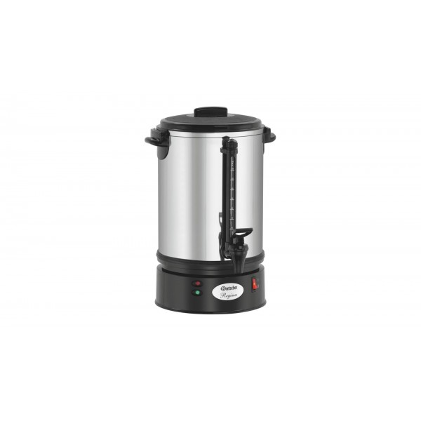 Percolateur à café Regina Plus 40 pour hôtels, restaurants, buffets et collectivités, avec une capacité de 6,8 litres (environ 48 tasses). Préparation rapide en 45 minutes et maintien au chaud pour un café toujours prêt. Construction en acier inoxydable avec systèmes de chauffage séparés, signal de détartrage et indicateur de niveau de remplissage pour une hygiène optimale et un entretien facile. Compact et pratique, il assure un service de boissons chaudes efficace dans les environnements professionnels.