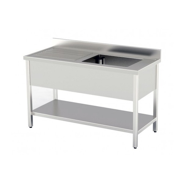 Plonge inox soudée professionnelle avec 1 bac de 500x500x300 mm et égouttoir à droite, idéale pour restaurants, hôtels, collectivités et snacks. Sa construction inox garantit robustesse, durabilité et hygiène même en usage intensif. L’étagère inférieure intégrée offre un rangement pratique pour accessoires et produits de nettoyage, tandis que l’égouttoir facilite le séchage et l’écoulement de la vaisselle, optimisant le poste de lavage pour un flux de travail efficace et ergonomique.