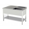 PLONGE INOX SOUDÉE – 1 BAC 500x500x300 MM – EGOUTTOIR À GAUCHE AVEC ÉTAGÈRE